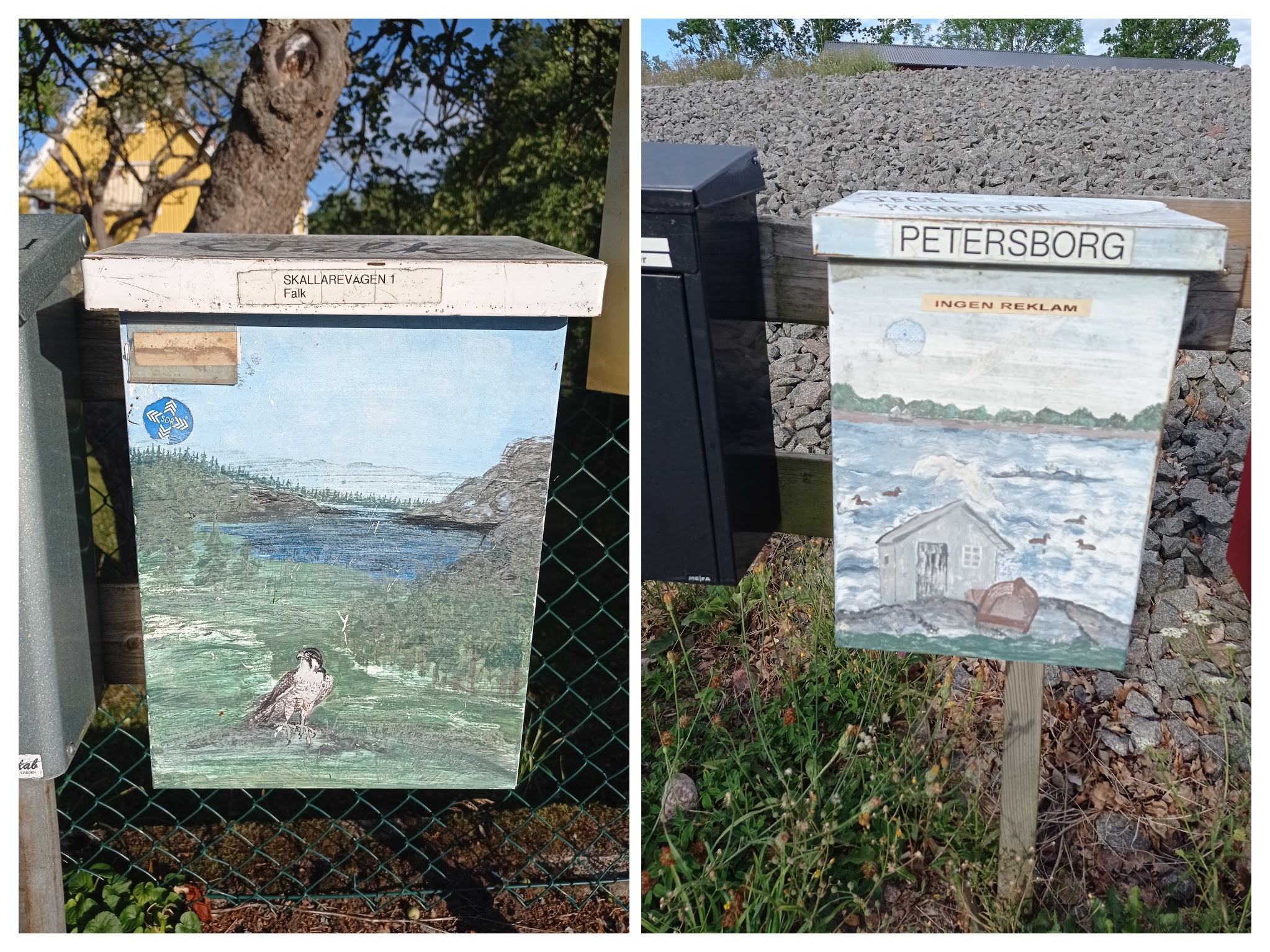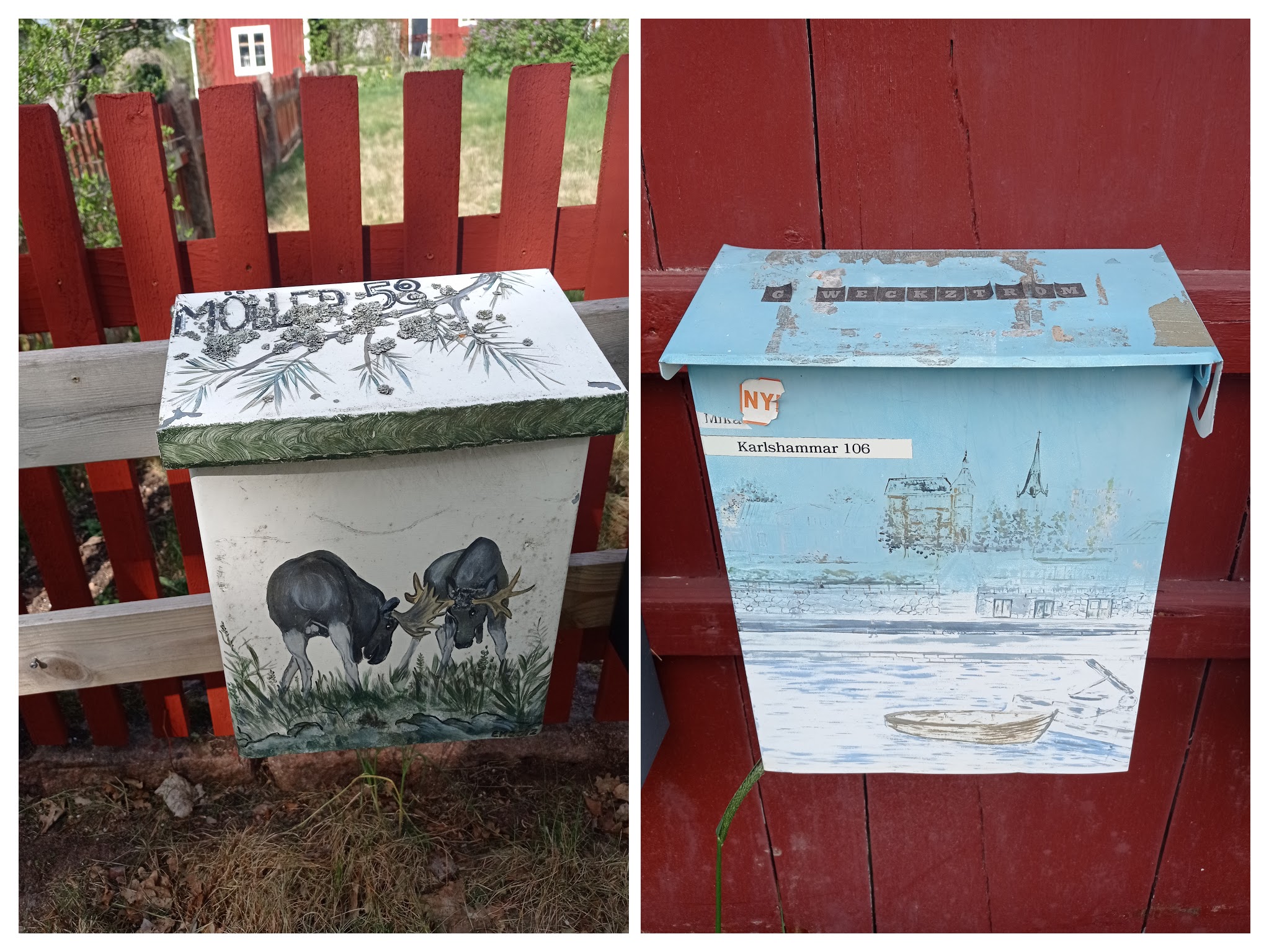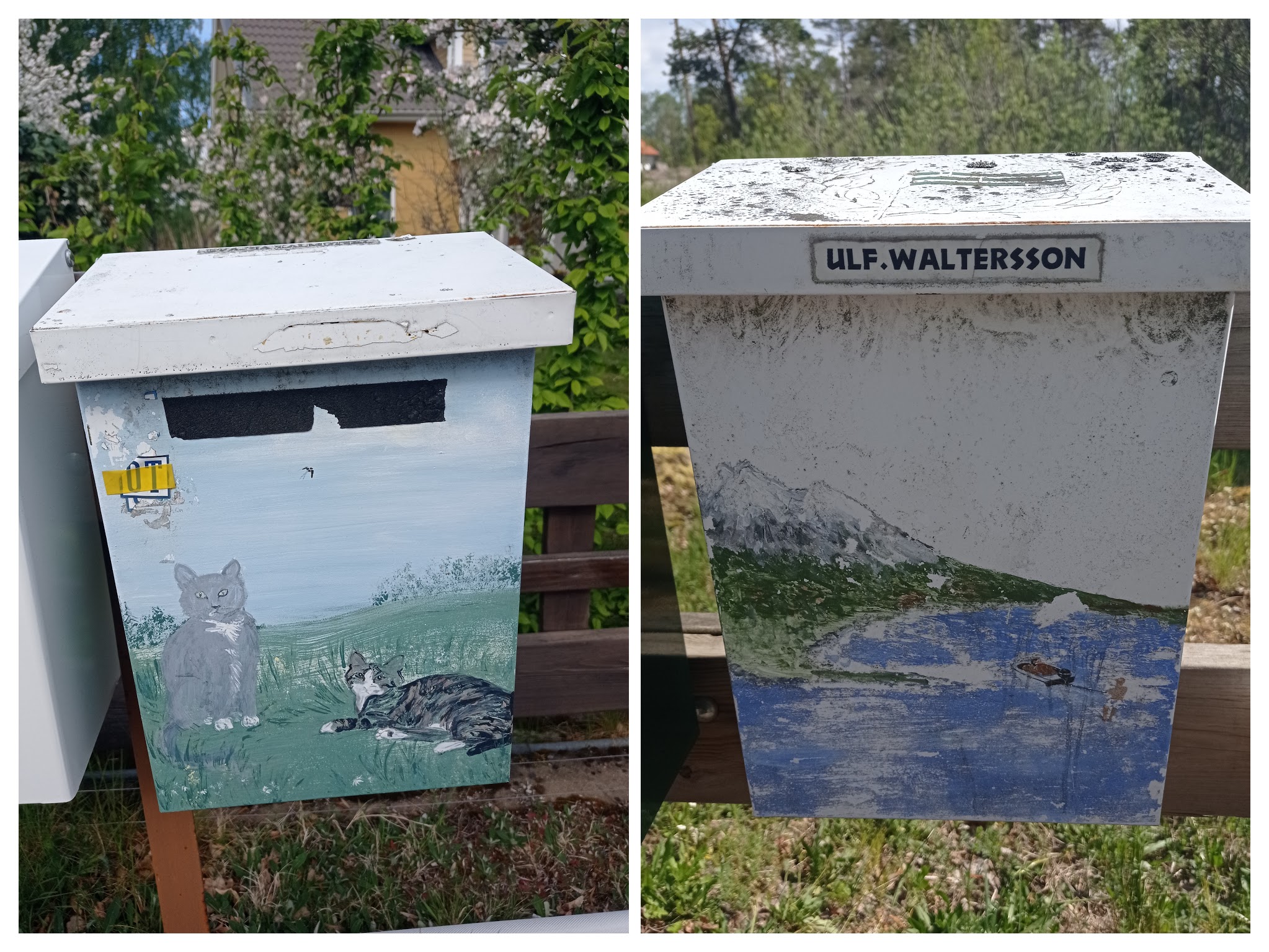 Бегая и катаясь на велосипеде, я начал фотографировать необычные почтовые ящики. Картины изображенные на них часто ассоциированы с тем местом где стоит дом и чем увлечен хозяин. Своего рода герб. На данный момент 56 ящика в коллекции. Буду периодически добавлять фото с новыми.