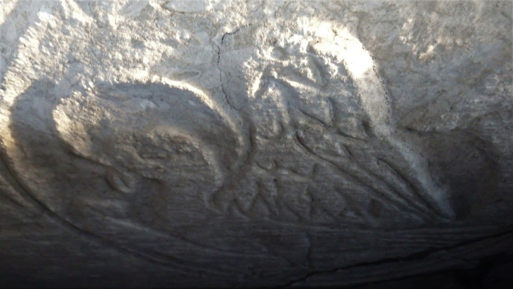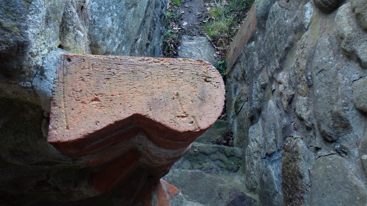 Изображения могильных плит аристократов похороненных здесь в 1492 году. Сами плиты сейчас закрыты железным щитом тк не сезон. Увидел только краешек, взобравшись на стену. Сразу чувствуешь себя Индианой Джонсом.