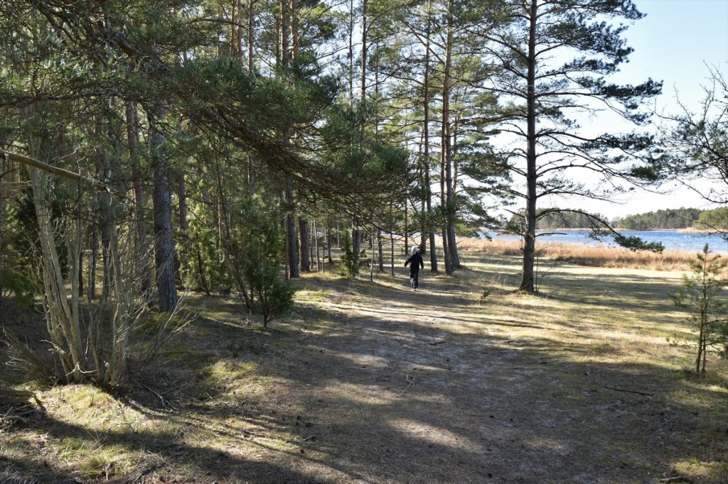 Третий день был солнечным, но очень ветренным. Мы посетили очередной природный заказник и добавили его в нашу коллекцию. Как видно из названия он тоже расположен на острове. Ландшафт здесь сильно отличается и чем-то похож на побережье Финского залива. Очень хорошие и легкие тропы, чётка маркировка делают его очень популярным у туристов с детьми. Всегда можно укрыться от ветра в одной из многочисленных бухт. Глаза и ноги радовались здесь. Лес прозрачный и светлый, а пляжи песчаные, что огромная редкость. Из интересного — камень с чашеобразным углублением, в котором, по поверьям собирается дождевая вода и люди ранее мыли в ней ноги, чтобы избавиться от бородавок на стопах. Камень-бородавочник. Очень доступный и ,вероятно, очень популярный заказник.