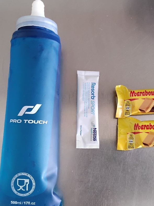 Следующий пункт это потребление жидкости. Попробовал пару раз Resorb. Вкус так себе, но менее мыльный, чем обычно. После этих тестов решил полностью отказаться от переноски воды с собой. Лишние 500 гр на первых 10 км не нужны, а после она станет очень тёплой и пить такую уже не захочется. Да и пункты питания с водой каждые пять километров.