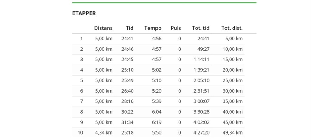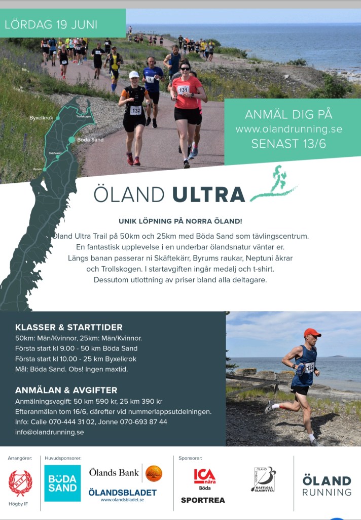 Второй ультра марафон Öland ultra trail 50 км. В прошлом году я дебютировал на этой дистанции. Главной задачей тогда было добежать. Это я сделал с финишным временем, 4.47 и 19 местом из 38. Вполне ничего, хотя устал очень сильно из-за жары. 26-27 градусов и отсутствие ветра выжали из меня всё. После анализируя гонку стало понятно, что на пунктах питания я провел около 20 мин — пил и обливался. Огромная потеря времени, но иначе не добежал бы. Так же проявилась моя хроническая проблема с питанием на соревнованиях, энергии банально не хватило (брал банан, шоколад, гель). В такую жару и на такой дистанции подобный набор не испытывал. Всё съел, но на 33 км врезался в пресловутую стену и пару километров брел без сил. Обувь так же была выбрана ошибочно, так как не ясно какое за покрытие ожидалось. Судя по названию trail — пересеченка. Обулся в inov8, но зря так как шипы на этой трассе не нужны совсем. После финиша естественно понял, что повторю в следующем году. Красивый маршрут и логистически доступно, да и время тоже явно можно улучшить.