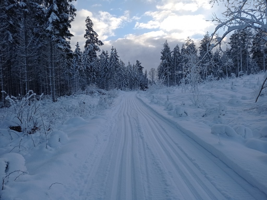 Выпал снег, но так не значительно. Для лыжни явно мало. Внезапно узнал, что предстоит ехать на два дня на учёбу в Halmstad плюс обещают в эти дни снежную бурю.
