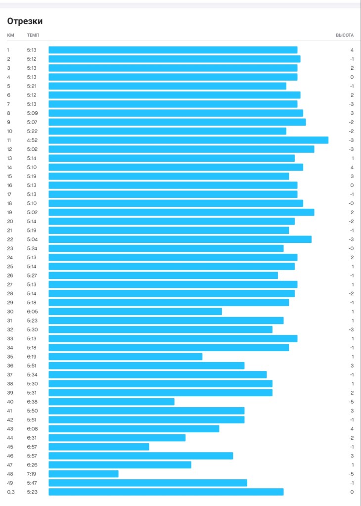 В цифровых значениях забег выглядит следующим образом.