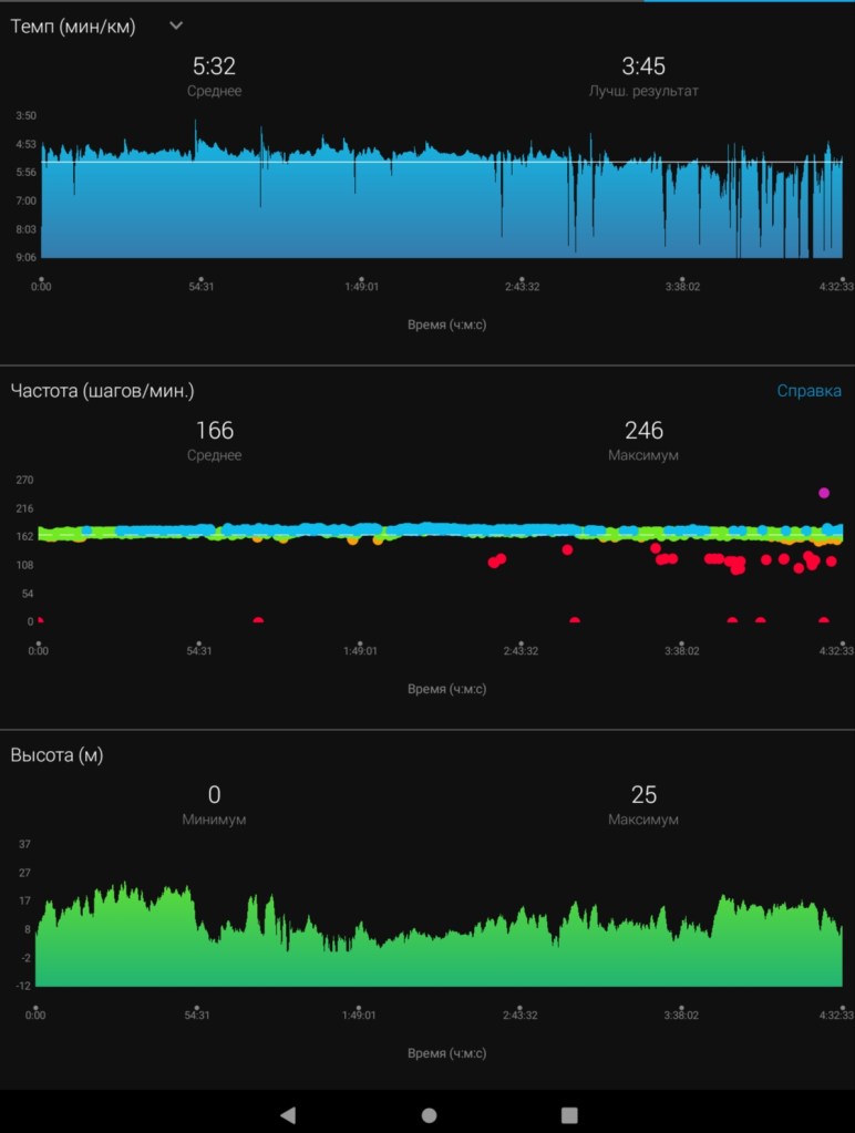 Да, я всё ещё делаю опыты с темпом в трейлах, хотя давно понял, что это практически бесполезно. Поэтому часы пикают, когда вываливаюсь из темпа.