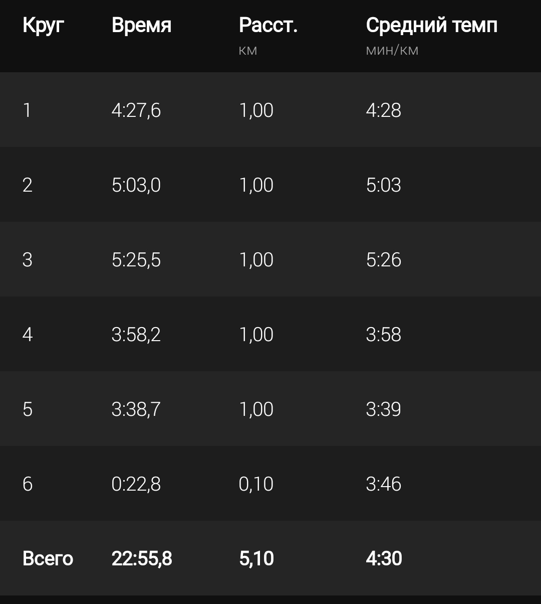Круги на стадионе скучны, но хорошо тренируют терпение. Эмоциональных и физических сил в данный момент у меня не особо много, так что средняя тренировочная дистанция на данный момент 5 км. На нескольких тренировках добегал последний километр на максимуме — темп получался быстрее 4 мин, что радовало.