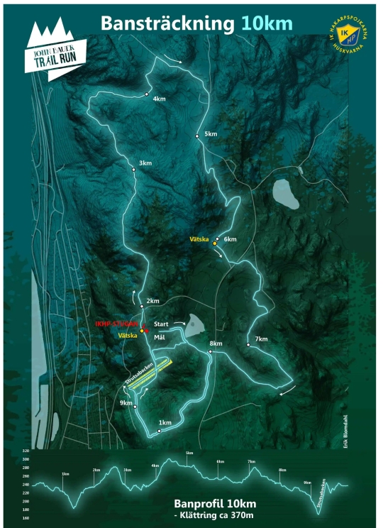 Получалось не особо технично, но с большим количеством подъёмов. Есть отдельный приз Bergtroll — горный тролль. Его дают участнику, который показал лучшее время на последнем самом крутом подъёме (на карте выделен жёлтым и находится после отметки 9 км). Посмотрев профиль трассы, результаты предыдущих лет и взглянув на себя в зеркало, решил, что если выбегу из 50 мин, то буду очень доволен. Заявился.