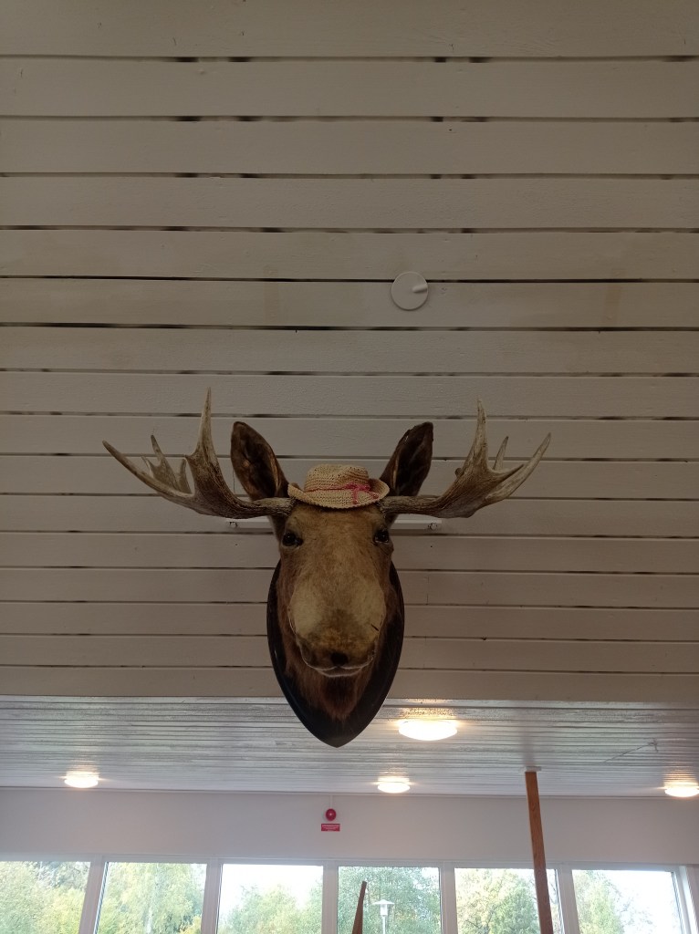 Пошёл получать номер. Всё стандартно и быстро. В помещении стоит масса кубков, выигранных воспитанниками клуба и ещё лось в шляпке.