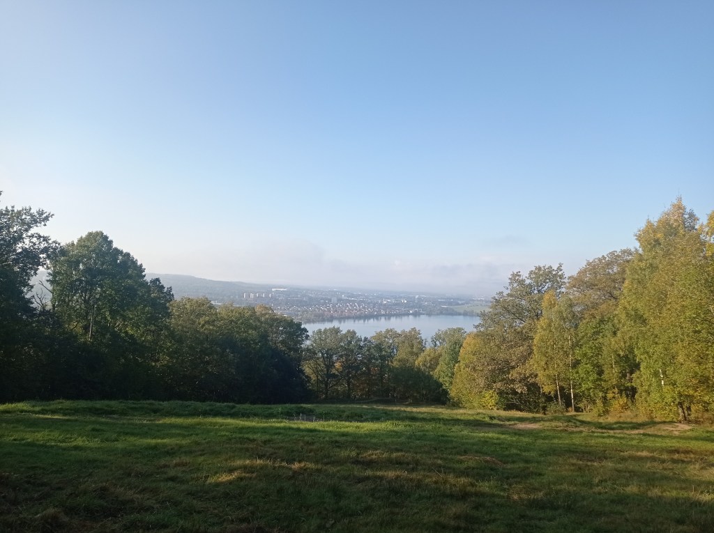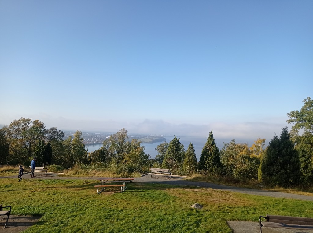 Погода утром была чудная. Выехал из дома в +7, пока доехал стало — 1. Туман настолько плотный, что казалось его можно черпать ложкой. Время в пути всего два с половиной часа и такая разница. Перед самым приездом вышло солнце и стало опять резко тепло +5. Стартовый городок, он же клубный дом организаторов и местного бегового клуба стоит высоко над городом и озером. Местные ребята и девчата одни из сильнейших в Швеции в трейле. Оно и не удивительно — рельеф тут что надо.
