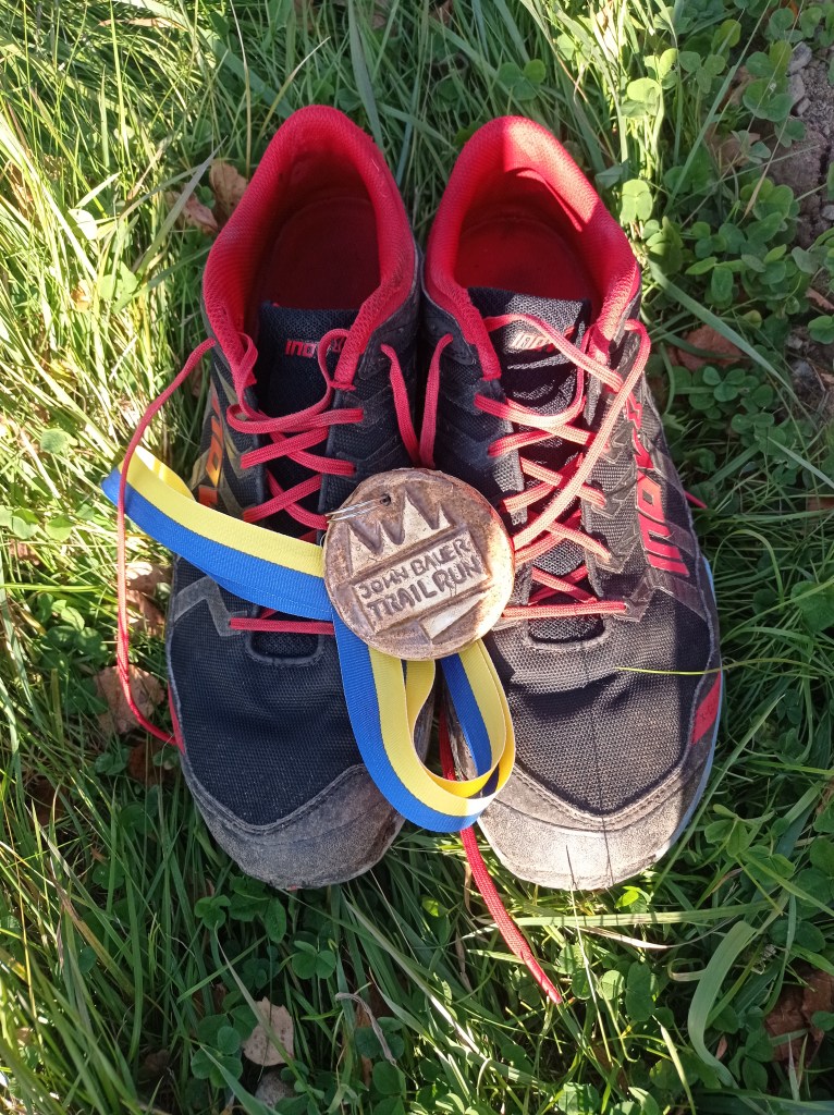 Пока ел суп и смотрел на обувь, в очередной раз задумался зачем производители постоянно «улучшают» и так прекрасно сделанные кроссовки, выпуская на следующий год новую модель. Ответа не нашёл. Суп закончился. Сфотографировал себя и медальку. Понял, что конечно же не доволен результатом и самочувствием, но принимаю итог как справедливый.